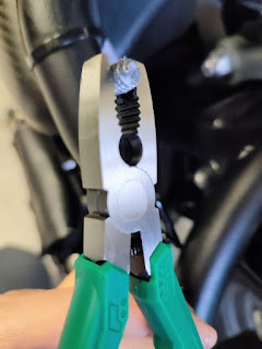 Upon checking the photos sent by him, we noticed that the broken bolt tip protruded a few millimeters. This was a perfect opportunity to recommend the Neji-saurus (Scerw Removal Pliers), which can grip and extract such bolts. I suggested a few different options.