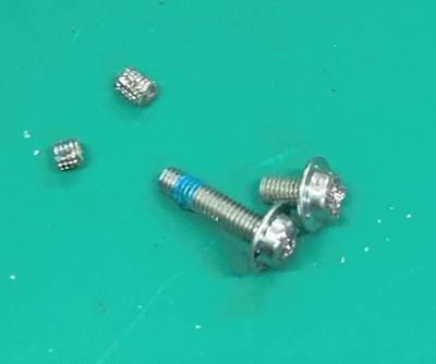 Indeed, the screw had a Threadlocker applied and was quite stuck. However, using a modified Neji-saurus Mogura (Socket Screw Extractor) with a trick, we successfully extracted the two screws.