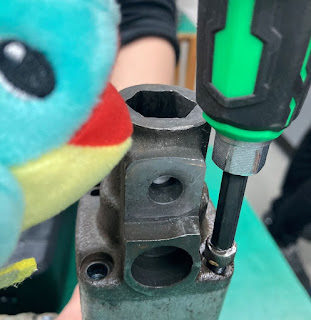 The hex cap screw around the head parts was severely stripped, but with the Socket Screw Extractor DBZ400 series (So called Neji Mogura), it was successfully rescued!