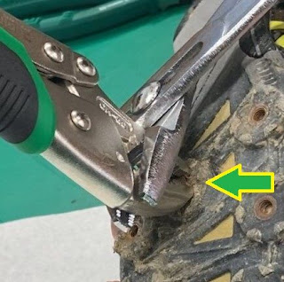 The second spike was more firmly stuck, so using the Vice-saurus (Product Code: PZ-65), we securely locked the spike pin and, with the Pumpla-saurus (Product Code: PZ-63), applied torque near the jaws of PZ-65 to successfully remove it.